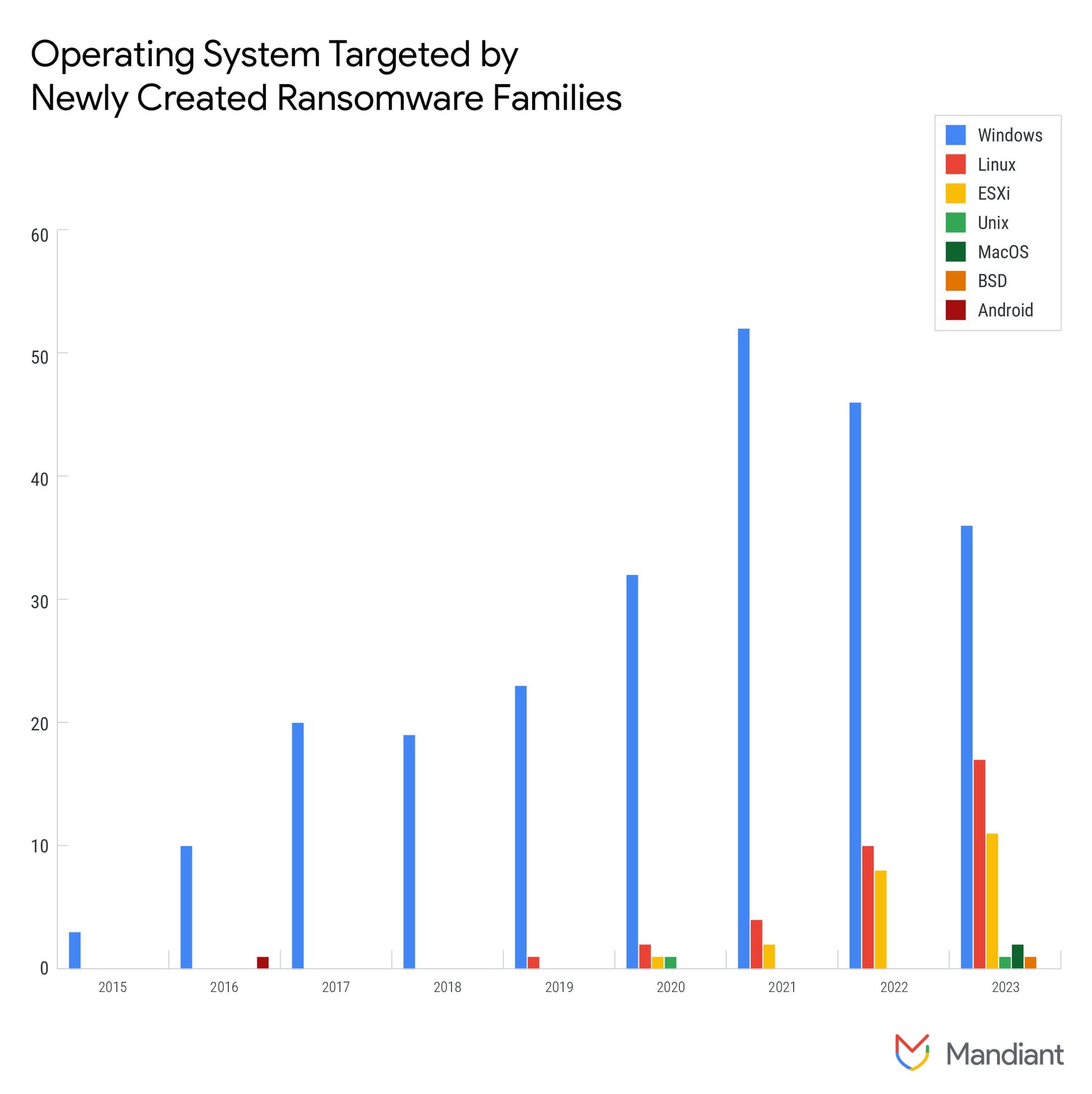 A Mandiant tájékoztatása szerint 2022-höz képest tavaly jelentősen nőtt a zsarolóvírusok aktivitása, sőt az elemzésből kiderül, hogy új zsarolóvírus-változatok is megjelentek.